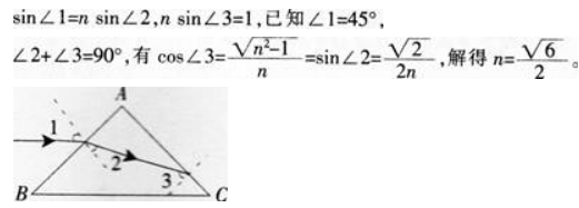 相关内容:如图,三棱镜,直角,截面,所在,平面,光线,沿平,方向,棱镜,全反射