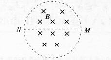 问题 如图所示,半径为R的圆形区域里有磁感应强度大小为B、方向垂直纸面向里的匀强磁场,M、N是磁场边界上两点且M、N连线过圆心。在M点有一粒子源,可以在纸面内沿各个方向向磁场里发射质量为m、电荷量为q、速度大小均为v=qBR/2m的带正电的粒子,不计粒子的重力,若某一个粒子在磁场中运动的时间为(πR)/(2v),则该粒子从M点射人磁场时,入射速度方向与MN间夹角的正弦值为()。