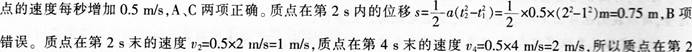 选项 A.质点的速度每秒增加0.5m/s B.质点在第2s内的位移是1.0m C.质点一定做匀加速直线运动 D.质点第2个2s内的平均速度为1.5m/s