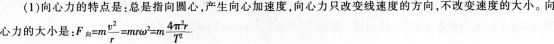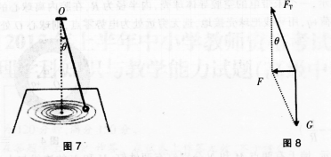 问题 下面是某老师讲授“向心力”一课的教学片段实录: 老师:同学们,上次课学习了向心加速度,我们知道做圆周运动的物体具有向心加速度。这节课我们学习向心力,大家翻看教科书第20页,将屏幕上展示的这几页课文读一遍(同时老师在屏幕展示课文的相关内容如下)。 向心力做圆周运动的物体为什么不沿直线飞去而沿着一个圆周运动 那是因为它受到了 力的作用。用手抡一个被绳系着的物体,它能做圆周运动,是因为绳子的力在拉着它。月球绕地球转动,是地球对月球的引力在“拉”着它。 做匀速圆周运动的物体具有向心加速度,根据牛顿第二定律,产生向心加速度的原因一定是物体受到了指向圆心的合力。这个合力叫做向心力。 (同学们大声地朗读着课文……) 老师:好了,同学们知道向心力了吧 同学们:(大声地回答)知道了! 老师:下面我们来分析书上的实验,大家先看老师的演示。 (老师拿出一根一端拴着小球的细绳,用手抓着绳的另一端,使小球做圆周运动) 老师:同学们都看见了吧,这就是书上所说的圆锥摆。现在大家看屏幕(图7所示)谁能说说图中小球的圆周运动所受到的向心力。 甲同学:向心力是绳子拉着小球的力。 老师:不对,有谁知道 (没有同学回答) 老师:大家仔细看看书上是怎么说的。 乙同学:书上说了,向心力是小球受到的重力和绳子拉力的合力。 老师:对了,大家要认真看书,还有不懂的吗 甲同学:书上说的,我们刚读过,“用手抡一个被绳系着的物体,它能做圆周运动,是因为绳子的力在拉着它。”所以向心力是绳子拉着小球的力。 老师:说的不是一回事,你怎么不动脑筋呢 大家看书上的图。(老师将书上的图投影在屏幕上) 老师:跟着我读书上的这句话。 老师和学生:(一起朗读)“钢球在水平面内做匀速圆周运动时,受到重力ra9和细线拉力B 的作用,它们的合力为F。” 老师:这个合力就是向心力.懂了吗 同学们…… 问题: (1)简述向心力特点,及其大小的表达式。(5分) (2)指出上述教学片段中老师教学行为的不当之处。(10分) (3)设计一个教学思路,帮助学生认识做“圆锥摆”运动的小球所受的向心力。(15分)