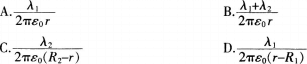 问题 两个无限长的共轴圆柱面上均带正电,内外半径分别为R,和R:,沿轴线方向单位长度所带电荷分别为A,,A:,则两圆柱面之间距离轴线为r的P点处的场强大小E为( )。