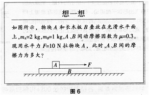 下面是某老师和学生在课堂上讨论摩擦力问题的教学片段。 老师:同学们,大家先看屏幕(图6),谁能说说A、B间的摩擦力有多大 学生甲:不知道力F有没有...