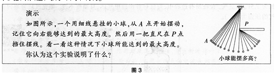 问题 如图3所示为某高中物理教科书中的演示实验(小球能摆多高)。根据教科书的描述,可以判断该实验在教学中用来说明()。