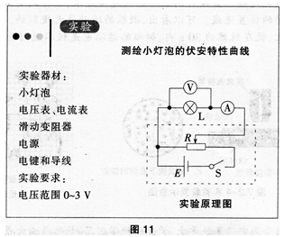 电学实验课上,学生分组做《测绘小灯泡的伏安特性曲线》实验,老师要求学生按大屏幕上的电路图及实验要求(图11)连接电路并进行实验,下面为某小组实验过程的片段...