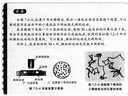 阅读材料.根据要求完成教学设计。 材料一《普通高中物理课程标准(实验)》关于“分子的热运动”的内容标准为:认识分子动理论的基本观点,知道其实验依据。 ...