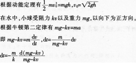 解析 设小球从高出水面h处落入水中的速度为”v0” 对两边进行积分
