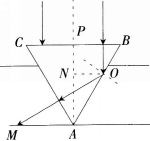 解析 玻璃的折射率为1.5,可得临界角小于45。。经过第一次折射时,由于入射角等于零,所以折射角也是零,折射光线不发生偏折。当第二次折射时,由于入射角等于60。,光线发生全反射,此时反射光譬恰好垂直射出。因为0N等于r,则0A等于2r,由于∠MOA=∠AMO=300,所以AM等于2r。故选C。