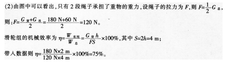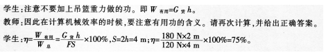案例: 下面是某学生对一道习题的解答: 题目:如图8所示,小强练习用带有吊篮的滑轮组吊货物,使其匀速升高了h=2m,已知货物重G货=180N,吊篮重G...