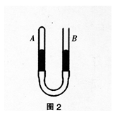 如图2所示,粗细均匀的玻璃管A和B由一橡皮管连接,一定质量的空气被水银柱封闭在A管内,初始时两管水银面等高,B管上方与大气相通。若固定A管,将B管沿竖直方...