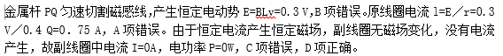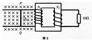 问题 如图3所示,匝数为2:1的理想变压器、原线圈电阻为零的轨道、可在轨道上滑行的金属杆PQ形成闭合电路。闭合电路内有磁感应强度为1.0 T、方向垂直纸面向里的匀强磁场,副线圈接l0Ω的电阻,金属杆加长为PQ长为0.1m、电阻为0.4Ω。若金属杆在外力作用下以速率v=3.0m/s沿轨道匀速滑行,则下列叙述正确的是()。