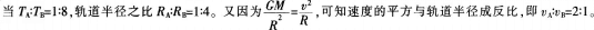 两颗人造卫星A、B绕地球做圆周运动,周期之比为TA:TB=1:8,则轨道半径之比和运动速率之比分别为( )。A.RA:RB=4:1;vA:vB=1:2 ...