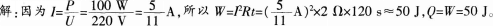 某同学对一道习题的解答如下: 有一台“220 V 100 W”的洗衣机,由于使用不当,造成电动机卡死,电动机由于温度升高而被烧坏。已知这台电动机内的线...