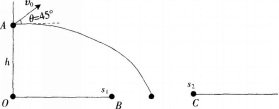 问题 某部队在山顶上进行炮弹射击训练,如图所示, 炮台距地面高度AO为h,炮弹射击方向与水平面成450。水平地面上有一目标区域,它的左端距O点的距离BO为s1,右端距O点的距离C0为s2。为了保证炮弹击中目标区域,炮弹初速度V0应满足什么条件 ( ) A. B. C. D.