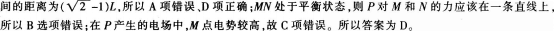 选项 A.M和N的距离大于三 B.P、M和Ⅳ不在同一条直线上 C.在P产生的电场中,M、N处的电势处处相同 D.M、N及细杆组成的系统所受合外力为零