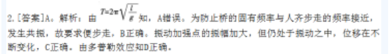 关于振动和波动,下列说法错误的是( )。A.单摆做简谐运动的周期与摆球的质量有关 B.部队过桥不能齐步走而要便步走.是为了避免桥梁发生共振现象 C.在...