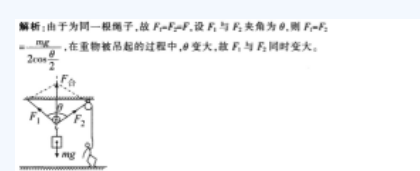 如图所示.某同学通过滑轮组将一重物缓慢吊起的过程中.该同学对绳的拉力将(滑轮与绳的重力及摩擦均不计)( )。 A.越来越小 B.越来越大 C.先变大...