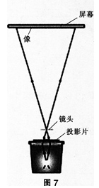 解析 (1)物体(投影片)位于凸透镜(投影仪镜头)一倍和二倍焦距之间,在凸透镜另一侧二倍焦距以外(屏幕上).成一倒立、放大的实像。 (2)教学设计: (一)教学目标 1.知识与技能:知道照相机、投影仪的工作原理。 2.过程与方法:通过讲解照相机和投影仪的结构,了解两者的成像原理,并能简单地描述凸透镜成实像和虚像的主要特征。 3.情感态度与价值观:具有对科学的求知欲,乐于探索自然现象和日常生活中的物理问题,初步建立将科学 技术应用于实际的意识。 (二)教学重难点 教学重点:凸透镜成像的几种情况的主要特征,模拟照相机成像时物距与像距的大小比较。 教学难点:通过照相机、投影仪的成像,综合分析得出它们成像的特点。 (三)教学过程 1.导入环节 师:(知识点衔接)同学们,刚才我们一起观察学习了生活中的透镜之一:照相机原理,谁能总结一下照相机是根据什么原理制成的其成像具有什么特点 生1:老师我来回答第一小问,照相机是根据凸透镜成像原理制成的。 师:回答正确。第二小问谁来回答(大家纷纷举手准备抢答,老师巡视后)生2你来回答。 生2:照相机的镜头是一个凸透镜,物体位于镜头二倍焦距以外,在透镜的另一侧的光屏上,成一个倒立缩小的实像.实像位于透镜一倍和二倍焦距之间。 师:总结得非常好,大家掌声鼓励一下。 全体:(掌声) 2.新课教学环节 师:照相机的原理我们先总结到这,现在我们一起来研究学习课堂上老师经常用的演示装置:投影仪原理。大家一起看演示实验。 师:(介绍仪器装置,边做实验边介绍操作过程),现在老师把投影仪上面的平面镜(反光镜)取下,然后将投影片放在栽物平台上,接下来调整镜头距离投影片的距离,大家注意看天花板成像情况,你们看到这个像有什么特点 全体:(大家全部抬头看后,异口同声回答)这个像是一个放大的实像。 师:回答正确。(提醒)大家注意我开始调整镜头到投影片的距离,大家注意观察像的大小如何变化。第一次.老师使镜头逐渐远离投影片,也就是说物距逐渐增大的过程中,大家看到像大小如何变化 全体:像逐渐变小啦。 师:是的。(继续启发大家观察思考),有谁知道这时的像距是指哪段距离又如何变化呢 生1:老师我知道,像距就是镜头到天花板的距离。当物距增大时,像距逐渐减小,成的像也逐渐变小了。 师:总结得非常精确。接下来大家在看第二种情况。老师使镜头逐渐靠近投影片,也就是物距逐渐减小,大家看到什么现象对比第一种情况做进一步分析。 全体:像逐渐变大了。 生2:(举手)当物距逐渐减小时,像距逐渐增大,像的大小也逐渐变大了。’ 师:非常好。谁能将投影仪原理从成像规律入手精准地描述一下。 生3:物体距透镜一倍和二倍焦距之间,在透镜的另一侧成倒立放大的实像,且当物距在一倍和二倍焦距之间调整时,物距减小,像距变大,像的大小也将变大;反之,物距增大,像距变小,像的大小也变小。 3.课堂小结环节 师:生3总结得非常好。现在我们一起整理一下成像规律(板书)。 师:老师在教学中经常用投影仪为大家展示课件,除此之外大家还在哪些地方见到过投影仪 生:开学典礼时在大礼堂见到过。 师:没错。大家要学会将物理原理跟生活实际相联系,并应用到社会实践中去。 4.布置作业环节 课后请同学们把练习册中本节课的相应习题做一下。