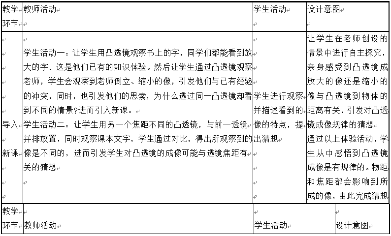 相关内容:材料,根据,要求,教学设计,任务,义务教育物理课程标准(2011年版),凸透镜,内容,认识,作用,凹透镜