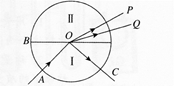 问题 由两种单色光P、Q组成的细光束,自A点沿半径方向射入两种不同材料做成的外形相同的半圆形透明体Ⅰ、Ⅱ,在圆心O点发生反射与折射现象,如图3所示,则()。
