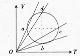 解析 分别过abcd四个点作出等压变化线,如下图所示: 故在V-T图像中,倾角越大,压强越小,所以Pa