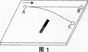 在学习“物体运动状态改变的原因”时,老师做了如图1的实验:具有一定速度的钢珠在水平面上能沿直线AB运动;如果在它的运动路径近旁放一磁铁,钢珠的运动路径将变...