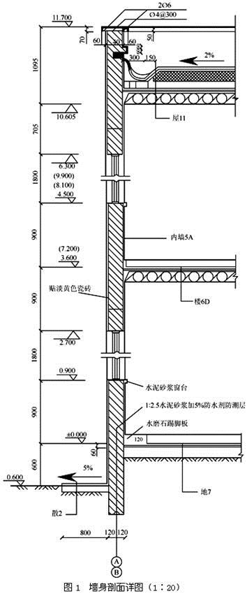 解析 该图样画出的建筑物基本构成部分:屋顶、楼板层与地面(楼地层)、墙、窗的构造等。