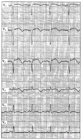问题 患者女性,67岁。近3天夜间呼吸困难,不能平卧。心电图如下图所示,应诊断为