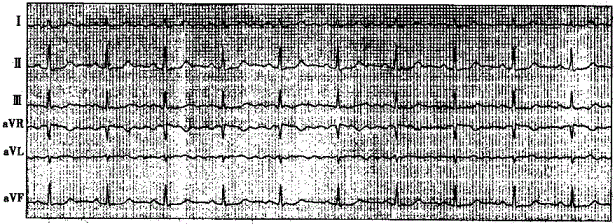 解析 :图中见I、Ⅲ、aVR、aVL导联出现锯齿波,而Ⅱ、aVF导联P波清晰,PR间期固定,RR间距匀齐。因此,部分导联锯齿波应考虑为干扰所致。