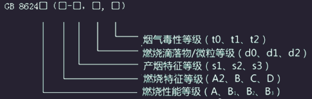 解析 示例:GB8624B1(B-s1,d0,t1),表示属于难燃B1级建筑材料及制品,燃烧性能细化分级为B级,产烟特性等级为s1级,燃烧滴落物/微粒等级为d0级,烟气毒性等级为t1级。