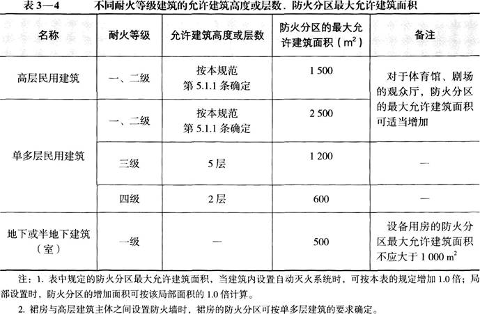 解析 《建筑设计防火规范》(GB50016—2014)第5.3.1条规定,不同耐火等级建筑的允许建筑高度或层数、防火分区最大允许建筑面积见表3—4。 根据表3—4,题中按一、二级耐火等级的单多层民用建筑来设置防火分区,同时设置了自动喷水灭火系统,则最大允许建筑面积可增加1倍,即为5000m2,则每层建筑面积为6000m2需至少设置2个防火分区。 《自动喷水灭火系统设计规范》(GB50084—2017)第6.3.1条规定:除报警阀组控制的洒水喷头只保护不超过防火分区面积的同层场所外,每个防火分区、每个楼层均应设水流指示器。 本建筑每层至少划分2个防火分区,每个防火分区1个水流指示器,共4个。