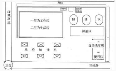 问题 一、情景描述 某加油站站内设灌区(内设埋地汽油罐两台,单罐容积45m3;柴油罐一台,单罐容积45m3)、站房、加油区(设十台单枪加油机)。该加油站是中国石油天然气股份有限公司下属的一座加油站。加油站正在逐步发展,各方面逐渐趋于成熟。加油站整体外观如下图所示。 加油站的总建筑面积1500m2。西面由加油区、工作生活区、储油区和卸油区组成。加油区占地200m2;工作生活区分为两层楼,占地360m2,一楼为工作区,二楼为员工生活区;储油区和卸油区各占地150m2。东面由便利店和自动洗车房组成,便利店占地64m2,自动洗车房占地40m2。加油站布局示意图如下图所示。 单位组建了消防安全组织机构,并且设有专职消防队,安全技术部作为该单位消防安全工作归口管理部门,并层层确定了消防安全责任人和消防安全管理人员。该单位还成立了义务消防队,并在灭火预案中明确了灭火行动组、通信联络组、疏散引导组、安全防护救护组。 单位建立健全了消防安全管理制度和保障消防安全的操作规程。 二、问题 1.针对本项目特点及国家规范要求,请简述消防目标要求。 2.单位消防安全制度主要包括哪些内容?