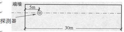 问题 如下图所示,一走道顶棚上居中安装点型感温火灾探测器,走道长度为30m,在走道距端墙5m位置安装一点型感温火灾探测器,按照消防安全技术标准,该走道还应至少安装()只点型感温火灾探测器。
