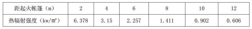 问题 汶川地震发生后,灾区需在数天内紧急搭建 300 余万帐篷和简易篷布房。相关文献曾给出纸张、 织物、木材的最小临界热辐射强度约为 10KW/㎡,并规定“ 应急篷宿区”之间的防火间距不应小于 2m。 为安全合理地确定帐篷的防火间距,进行了实体火灾实验。距起火帐篷不同测点处的热辐射强度值见 下表。事实上,在确定薄膜类建筑的防火间距时,火灾热辐射强度并不是唯一的控制因素,当地的气 象条件,尤其是风的影响成为控制性因素。参照《建筑设计防火规范》 (GB50016-2014)相关规定,帐 篷防火分区的防火间距不宜小于() m。