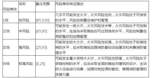 根据区域火灾防控实际,在设定量化范围的基础上结合公安部2007年下发的《关于调整火灾等级标准的通知》中的火灾事故等级分级标准,将火灾风险分为四级,其中,高...