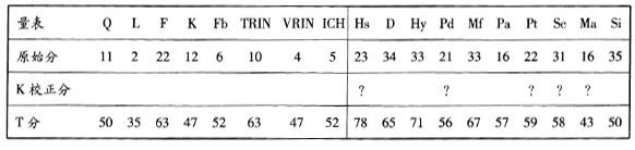 解析 【考察重点】MMPI-2的结果解释【试题解析】精神衰弱量表的K校正分应为22+1.0*12=34;回答矛盾或无法回答的项目要看Q量表的原始分,共有11个;TRIN≥80分表示受测者不加区分地对题目给予肯定回答,本案例中,TRIN量表的标准分为63分,未达到异常标准;临床量表最高分为Hs量表78分,次高分为Hy量表71分,第三高分为Mf量表67分,次高分和第三高分相差4分,差距低于5分,两点编码类型属于非突出编码。故答案为AD。