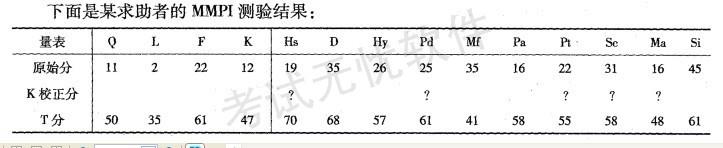 解析 根据案例中的表格内容可看出求助者超出常模的项目有Hs疑病、D抑郁、Pd 病态人格、Si社会内向,其余的都在常模范围内,没有明显的表现。