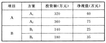 某企业现有计算期相同的A、B两个项目可以投资,每个项目各有两个备选方案,每个方案的投资额和净现值见下表。若基准收益率为10%,企业的资金限额为500万元,...