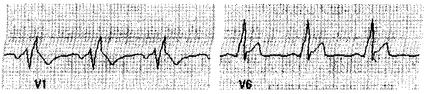 下图提示的心电图改变为A.预激综合征B.左束支传导阻滞C.房室传导阻滞D.右束支传导阻滞E.室内差异传导