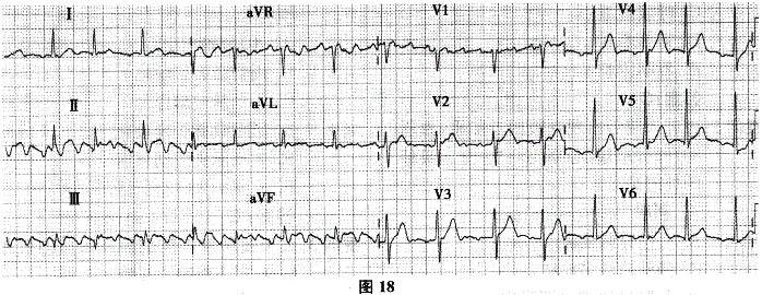 问题 55岁女性,反复发作心悸来诊。心电图如图18。 ? 典型心房扑动的发病机制是