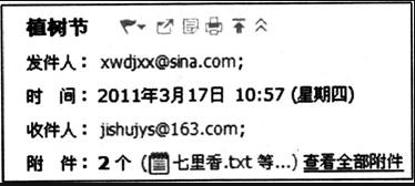 解析 【知识点】电子邮件 【答案】B。 【解析】从图中可以看出附件为2个,其中一个是“七里香.txt”,另一个没有显示。