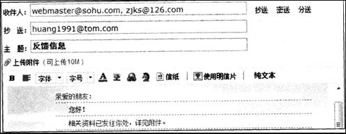 某用户撰写电子邮件时的部分内容如下图所示: 则下列说法正确的是(  )。A.共有2个接收对象 B.已经上传了1个附件 C.共有3个接收对象 ...