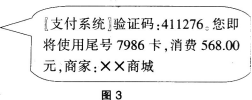 问题 当从网上购物付款时,买家的手机收到的来自支付系统的验证码如图3所示,这种短信验证方式属于()。