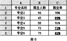 问题 如图6所示的“学生就业信息统计表”中,将就业率在90%以下的内容字体格式设置为“加粗、下划线”,最便捷的方法是使用()。