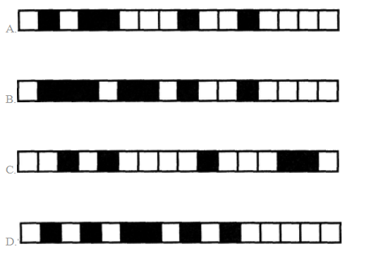 问题 某字库采用点阵方式描述汉字字形,点阵规模为1616,每个点用1个二进制位表示,“0”表示白点,“1”表示黑点,逐行编码。某一行的位代码为“0101100010010000”,则该行正确的图形表示为()。