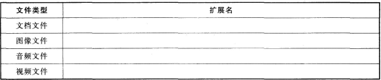 请将下列文件扩展名填入表1对应的位置中。 bmp、txt、png、tif、mov、wav、wps、rtf、pdf、ram、mpg、wma 表1