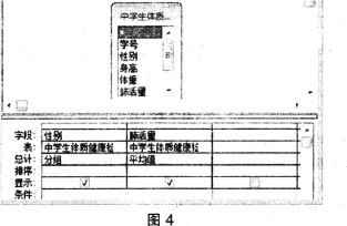 相关内容:Access,数据库,选择查询,设计,视图,如图,4所示,查询,性别,人数,肺活量