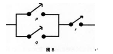 下列逻辑表达式中与图8所示关系对应的是(  )。 A.pand(qandr) B.porqandr C.notrandPorq D.rand(p...