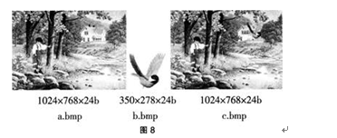 将图8中所示的a.bmp和b.bmp加工处理后得到c.bmp,下列说法正确的是(  )。 A.图像b.bmp与c.bmp的像素个数相等 B.文件a....