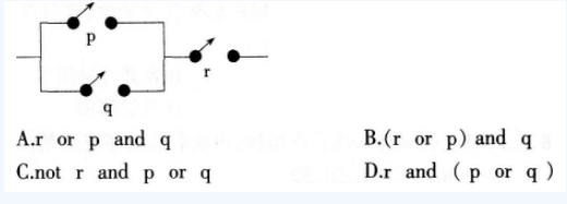 解析 P、q在两条支路上,因此P、q是或的关系,用or表示,r在干路上,因此r、P、q的关系是r and(p or q)。