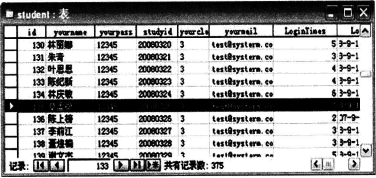 解析 当前记录是第l33条;yourpass字段的数据类型是文本型;数据表的名字是student。
